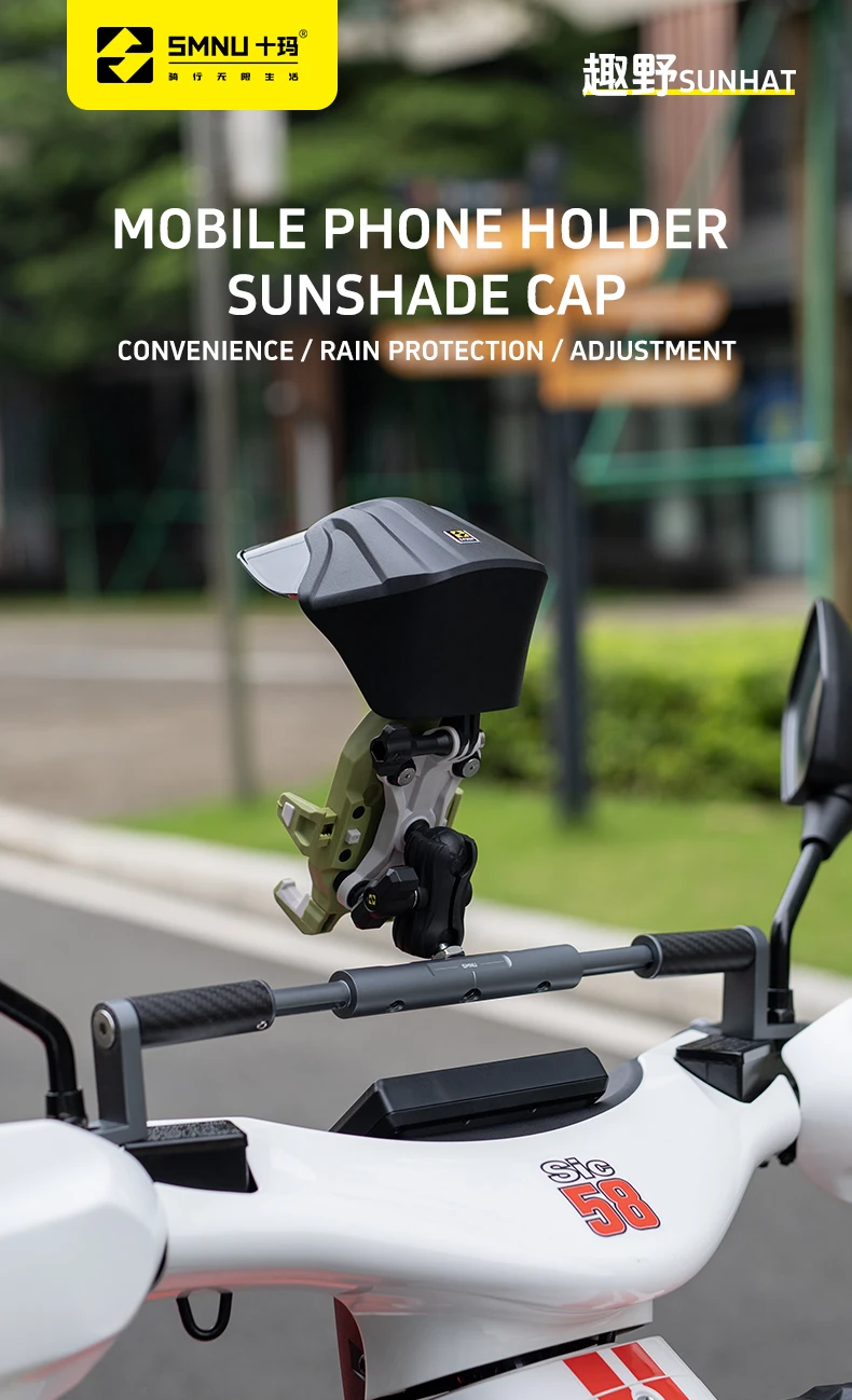 SMNU आउटडोर बारिश-प्रतिरोधी और वॉटरप्रूफ मोटरसाइकिल मोबाइल फोन होल्डर, सनशेड हैट और कैप के साथ मोबाइल बाइक होल्डर