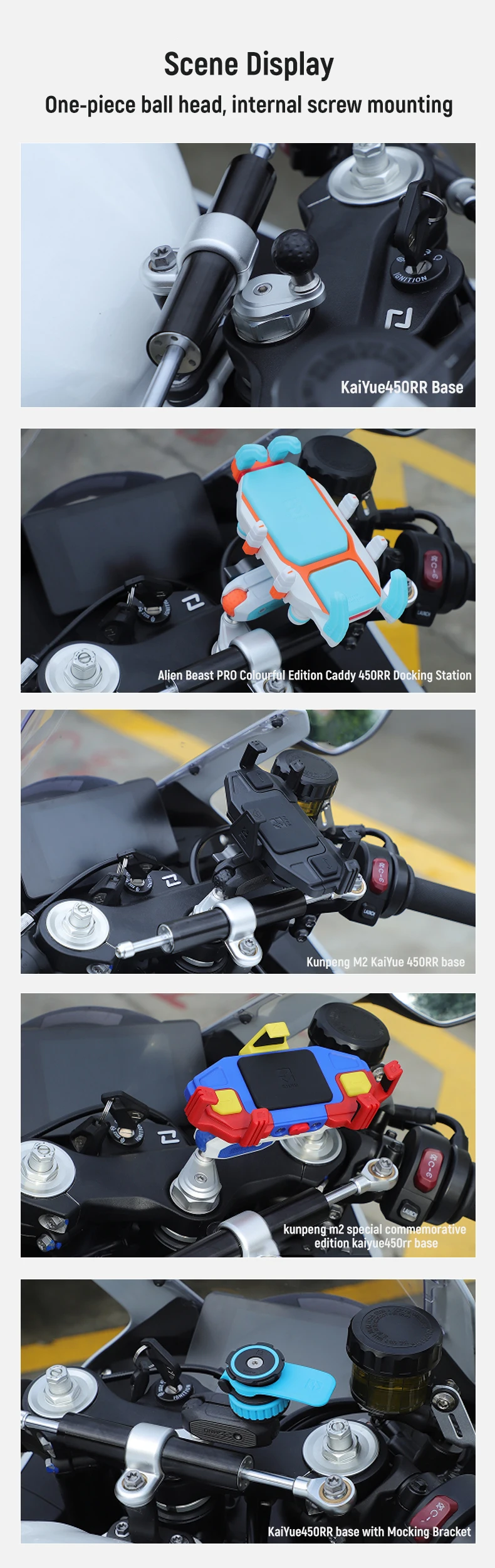 Base per testa sferica a sgancio rapido per moto, supporto flessibile impermeabile per smartphone con funzione antivibrante, accessori mobili per moto