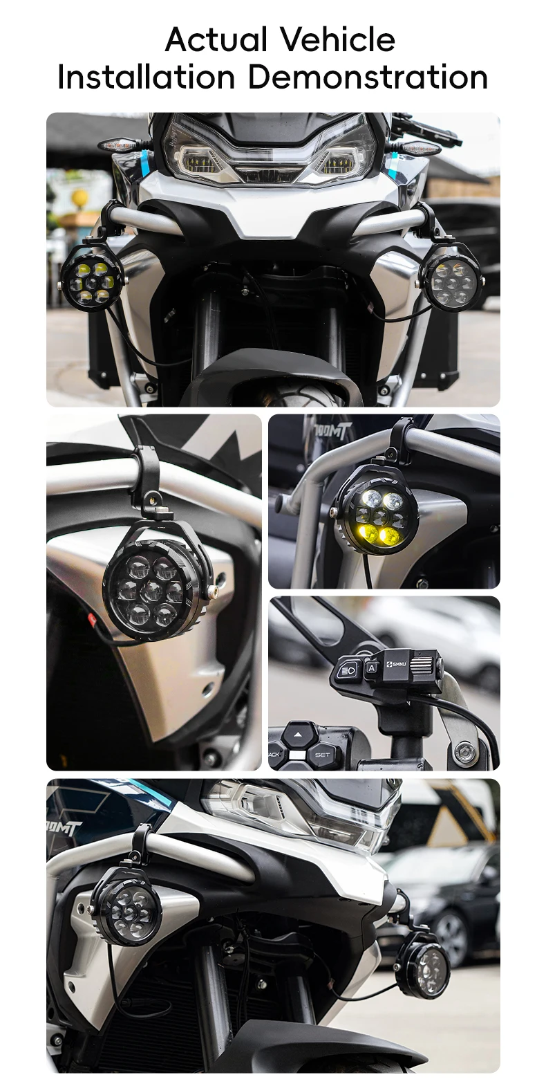 Motociklo papildomasis priekinis šviestuvas