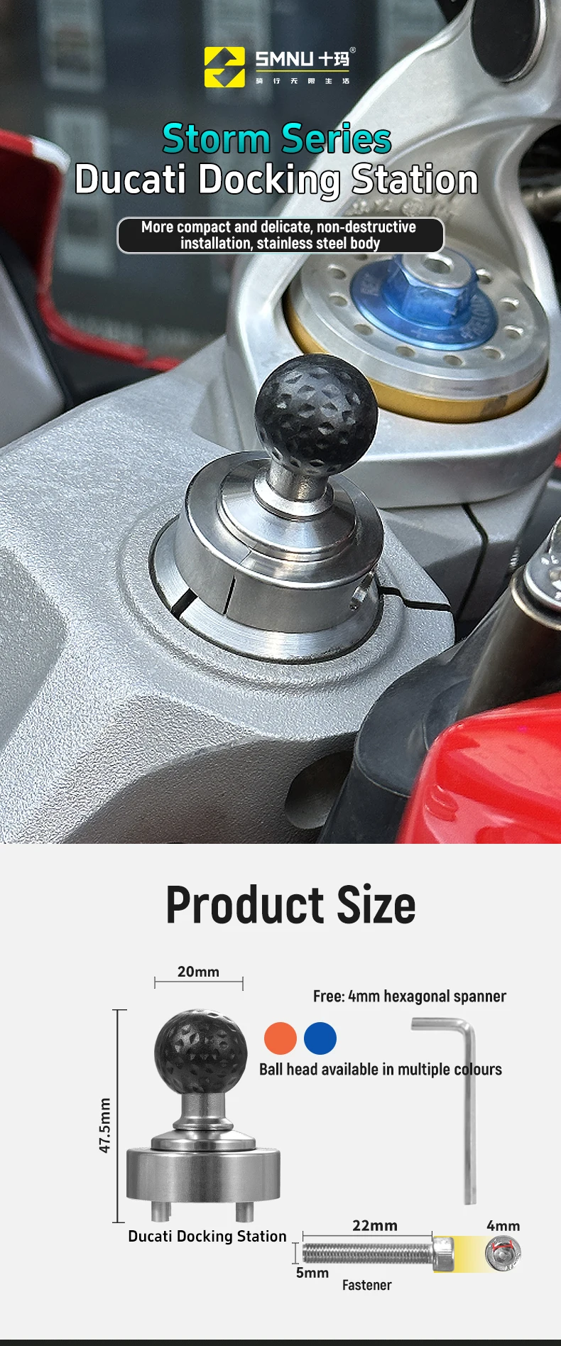 SMNU vandeniui nepraleidžiantis, lankstus aliuminio lydinio motociklo rutulinis galvutės laikiklis, 20 mm telefono montavimui, korozijai atsparus Ducati modeliams